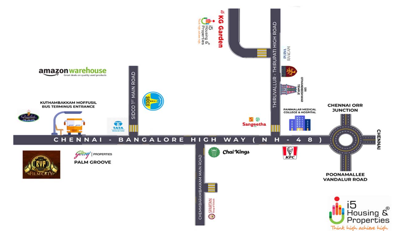 Our flagship project, i5 KG Garden in Thirumazhisai, offers ready-to-construct villa plots within a futuristic